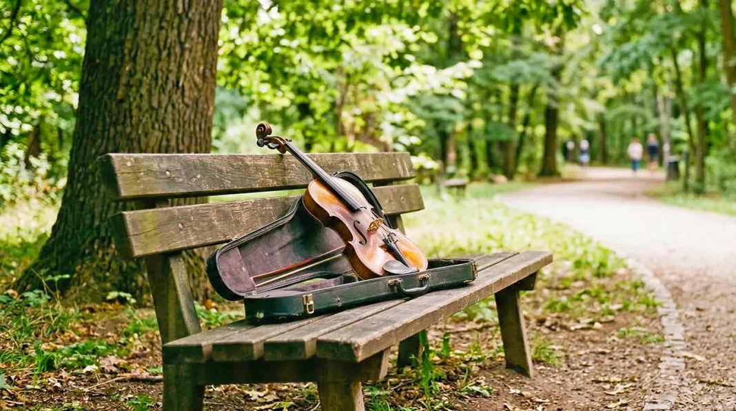 Park v središču mesta je imel svoj ritem, ki se je čez dan spreminjal skoraj neopazno. Zjutraj so ga prečkali ljudje na poti v službo, opoldne so se na klopcah ustavljali starejši, popoldne so se igrali otroci. In nekje vmes, med drevesi ob robu poti, je na osamljeni klopi skoraj vsak dan sedel moški z violino.