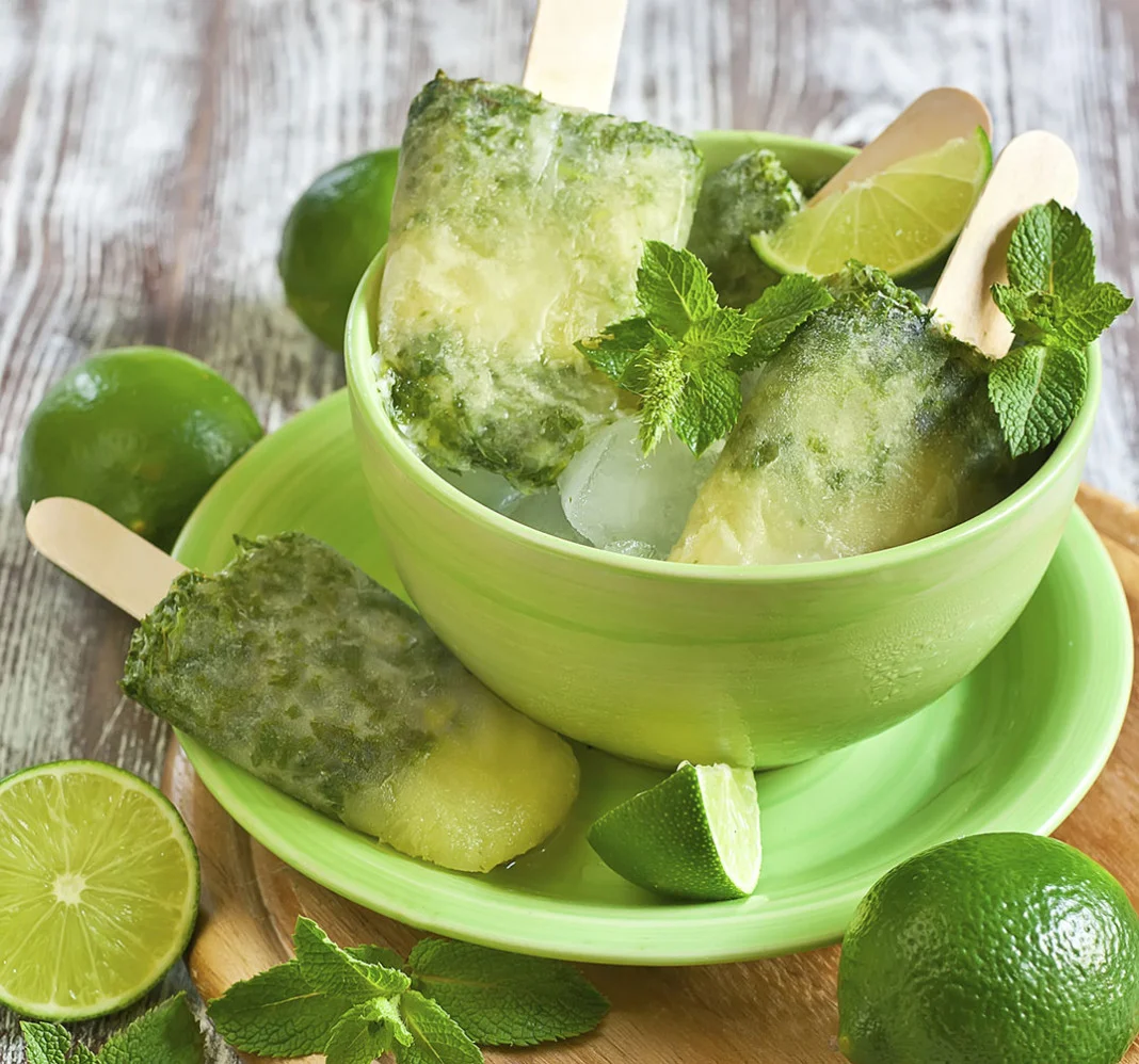 Sestavine dobro zmešamo v mešalniku ter tekočino nalijemo v modelčke. Ko je popolnoma zmrznjena je pripravljena za uživanje. Prijetno ohladitev! Lahko pa poskusite tudi z listi mete, ki bo še dodatno popestrila in osvežila okus.