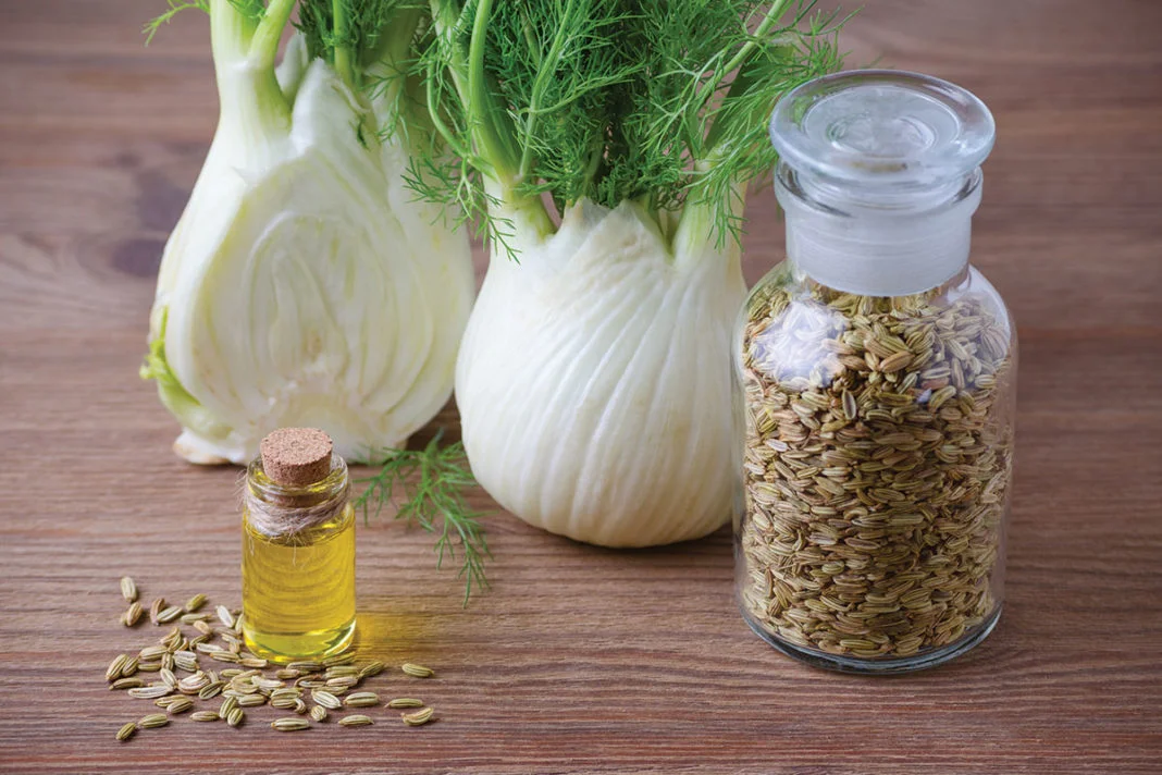 - Navadni komarček (Foeniculum vulgare) sprošča krče v prebavilih in odpravlja vetrove, deluje tudi protibakterijsko.