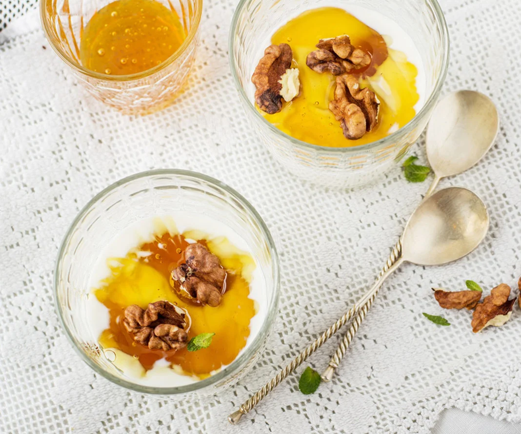 Jogurt s figami, orehi in medom